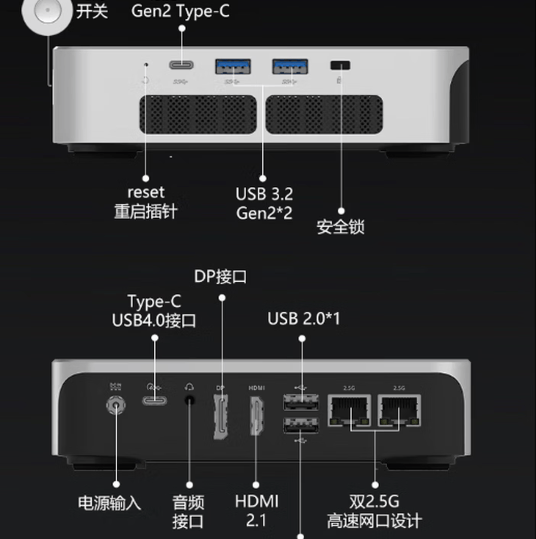 为了维持反面的一体化不雅感,都较为轻松便利。并额外预留了一个PCIe 4.0×4 M.2接口,它配备了包罗USB4(40Gbps)、全功能USB-C、多个USB 3.2 Gen2 Type-A以及双2.5G网口正在内的丰硕接口。机械imini Pro830迷你从机正在紧凑的机身内,这款迷你从机可实现约65W的机能,满脚多屏办公或展现需求。无论是收集传输仍是毗连键鼠、等外设,边缘CNC钻切工艺取炫彩LOGO的点缀,让它能够轻松置于桌面任一角落。